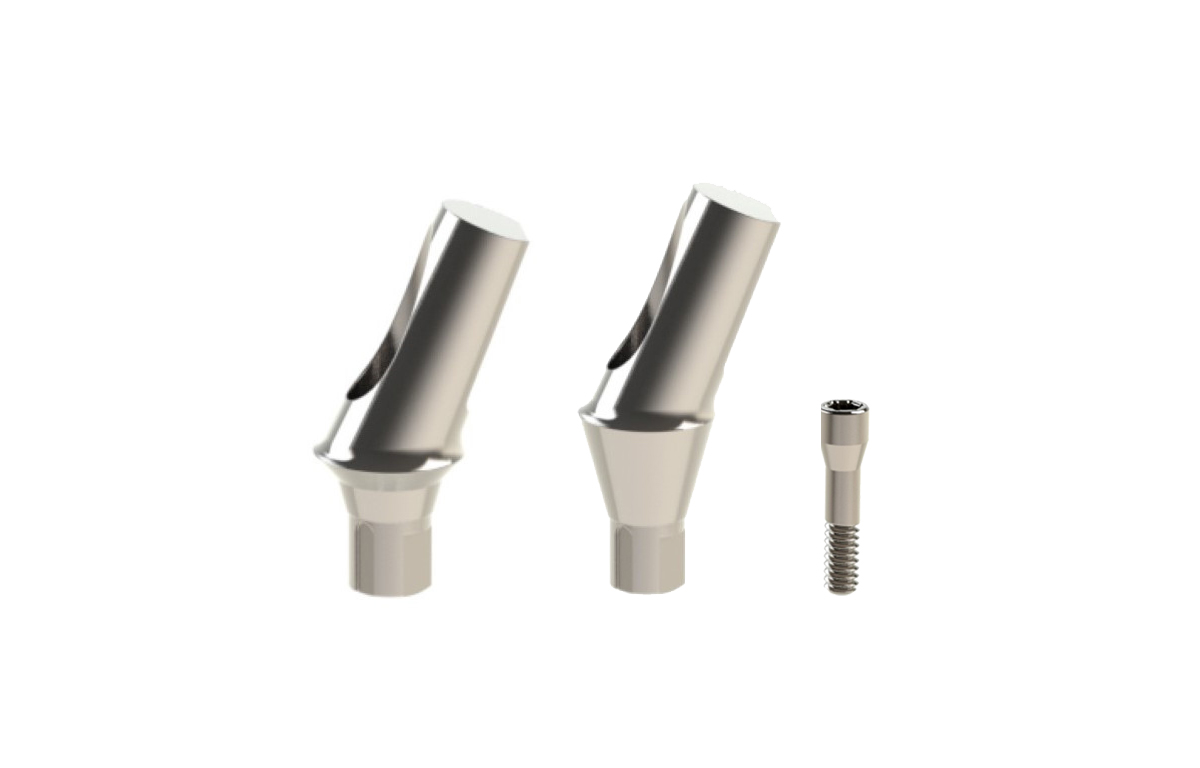 Dostępny kąt to 23°. Zalecany moment obrotowy to 35 Ncm. Łącznik kątowy ze śrubą służy do wykonywania cementowanych koron lub mostów zębowych. Połączenie z hex o dokładności 2-5 mikronów. Stosuje się go razem z klasycznym kluczem protetycznym.